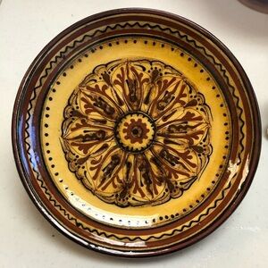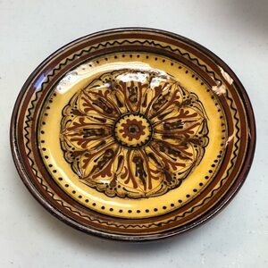 Polished folk Art/pyrography/decorative wall plate/great for gallery wall/ see pictures also can just use on a table top/ lots of decorative ways excellent condition no chips or cracks beautiful design