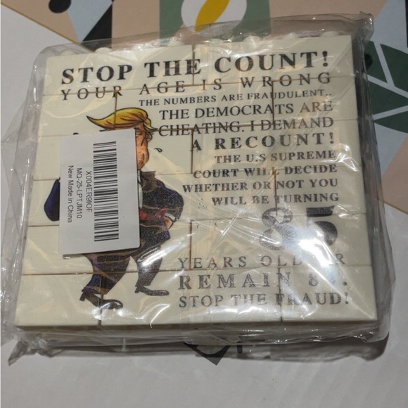 Lego set with political theme. Features bold text and cartoon illustration. Perfect for political enthusiasts.