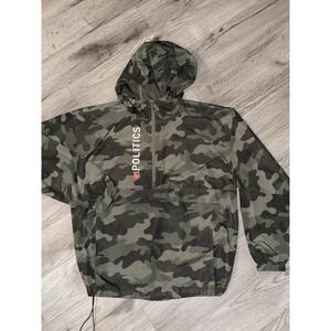 New without tags Politics x Champion Anorak Green Camo Windbreaker Jacket for Mens US Size Large . My son took tags off but never wore it. New condition. has front pocket . Very cool stylish.Anorak / windbreaker. Please see photos as this is the exact item you will be receiving and feel free to request any additional photos.