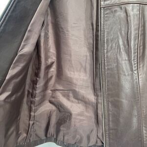 Politix Brown Collared Open Bottom Long Sleeve Zip Up Leather Jacket Size 4