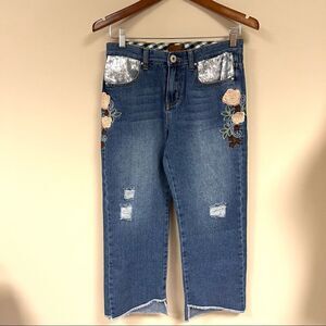 Pol jeans with embroidered flowers/ sequined pockets 2/4
