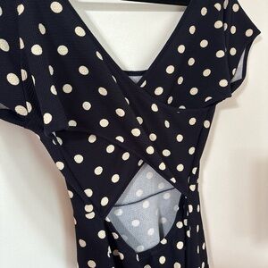 Chic and stylish polka dot dress in classic black and white. Perfect for any occasion. Size L.