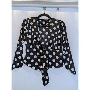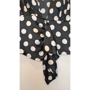 Polka Dot Blouse Womens Small Black White Button Down Deep V-neck Career Top 90s