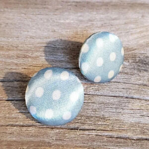 Earrings, polka dotted, satin fabric covered, 21mm round stainless steel posts. Sold individually. Each pair includes clear earnuts for the posts. Great for spring and summer! Goes with everything from jeans to a little black dress.