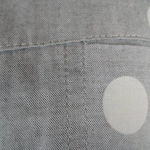 Polka Dot Button Down Long Sleeve Blouse. Button cuffs. Pleated back with yoke. There are no tags on this blouse. Front pockets. I estimate that it is a size small. This would be cute with jeans. Good preowned condition except for a few of the buttons have a coating (please see photo).