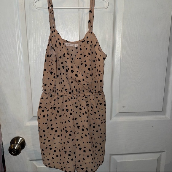 Chic romper with a playful polka dot pattern. Perfect for casual outings.