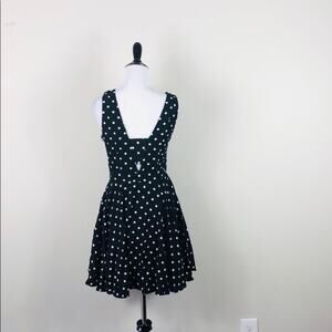 Black and white polka dot dress with cutouts. Hidden side zip. Lined. 100% polyester.