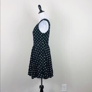 Black and white polka dot dress with cutouts. Hidden side zip. Lined. 100% polyester.