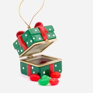 Green with White Polka Dots Gift Box Porcelain Hinged Surprise Gift Trinket Box Christmas Ornament