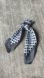 Stylish black and white polka dot hair scrunchie with attached scarf. Perfect for adding a chic touch to any hairstyle.