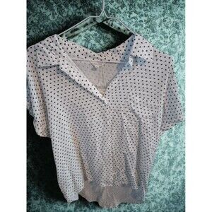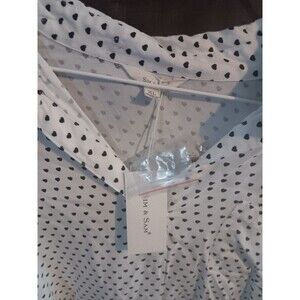 Polka Dot Heart Short Sleeve Blouse with Collar Sim & Sam XL Women's White Nwt