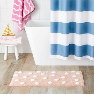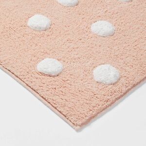 Add playful dimension to their bathroom flooring with this Polka Dot Bath Rug from Pillowfort™. This rectangular bath mat makes a great addition to their bath essentials. It features a raised polka dotted pattern for a fun pop of texture. The 100% cotton construction makes it highly absorbent, while the tufted design provides them fluffy and soft comfort underfoot when they brush their teeth or step out of the shower. Coordinate with similar bath accessories to bring a cohesive look to their bathroom. Rug pad recommended.