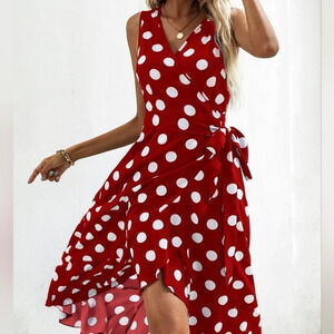 Polka Dot Knot Side Wrap Dress