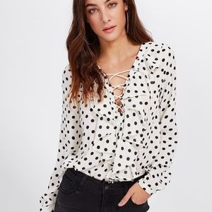 Polka Dot Lace Up Ruffle Blouse - BRAND NEW