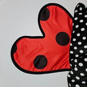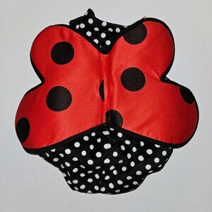 Adorable polka dot ladybug costume for kids. Features a charming red and black design with white polka dots. Perfect for dress-up and parties.