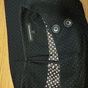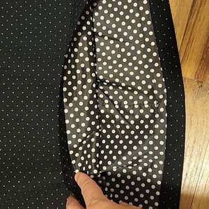 Black and white polka dotted skirt, lined, back zip, hook and eye closure, in excellent condition.