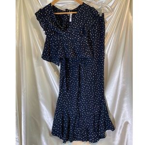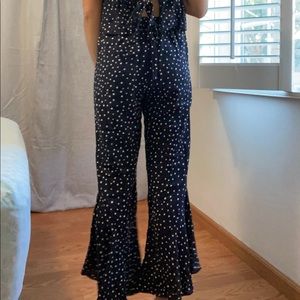 Perfect lightweight, breezy set for the Spring/Summer season! Ruffle sleeves on the top and ruffle hem on the pants. Top is open back with 2 ties. Purchased from a small, local boutique and worn once. Condition like new!