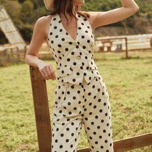Polka Dot Print Halter Top And Pants 2 Piece Set,Suitable For Summer