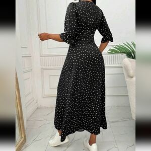 Polka Dot Print Short Sleeve Split Thigh Midi Dress