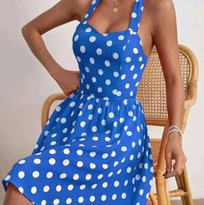 Polka Dot Print Tie Backless Halter Dress
