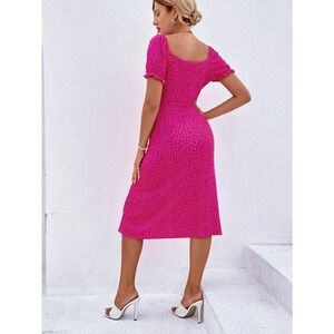 Polka Dot Puff Sleeve Tie Front Ruched Bust Slit Hem midi Dress red