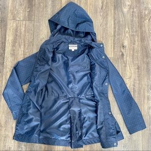 Light-weight, but fully lined rain coat. Hood with snaps, two front pockets, drawstring waist, snap and zipper closure. *Like New* Only worn a couple of times.