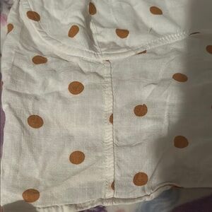 Chic and playful, this polka dot ruffle set of skirt(built in shorts ) and top is perfect for any occasion. The off white ( like cream) base with brown-orange dots adds a touch of elegance to your wardrobe. Worn twice . in very good condition .
