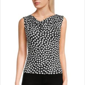 Chic sleeveless top with a stylish polka dot pattern. Perfect for casual outings or office wear.