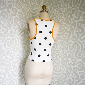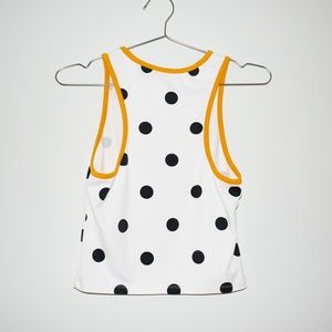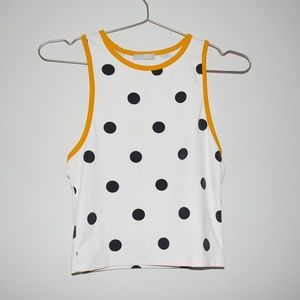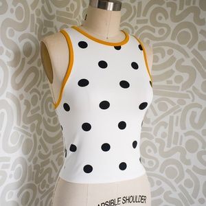 Top is from Zara and ideal for layering. It is very sketchy and has a soft, cool, almost silky feel to it. It is black/navy and white/cream with mustard pipping around the armholes and neckline.