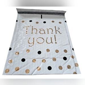 White/Black/Gold heavy duty bubble poly mailers, 'Thank you!' text. 10 count 8½" x 11". Self-adhesive and waterproof.
