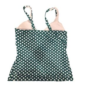 Polka Dot Woman’s Tankini  Swimsuit Top Green White Size Large