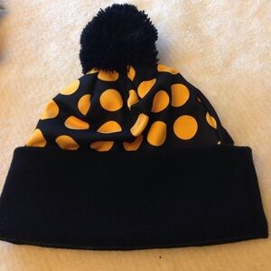 Black and gold hat with nice knit band and fluffy Pom on top. NWOT and never worn.