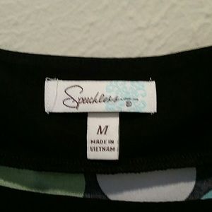 This is a cute scoop neck short sleeve baby doll like dress that ties in the back. The polka dots are white olive green and teal. The backdrop of the dress is black with black trim and white stitching along the waist. Barely used in excellent condition. No trades / No PayPal. Smoke and Pet free home. Please ask questions. Like what you see make an offer! Bundle offers welcome.