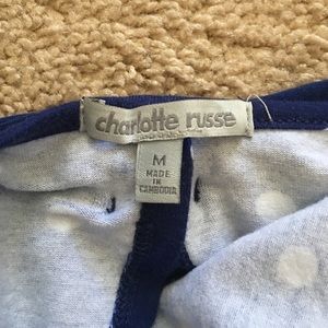 Navy blue crop top with white polka dots, open back connected by a bow, only worn once