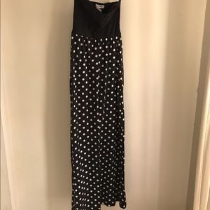 This maxi dress is perfect for hot summer days when a maxi skirt just won't do it. The top is very form fitting and the bottom is full length. I am 5'4" and I could wear small wedges or flip flops.