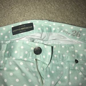 Mint color with while polka dot detailing! These are super cute and no discoloration or signs of wear or tear.