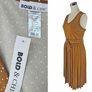 Polka dot pleated belted fit & flare Bold & Chic vintage inspired dress 2-3X NWT