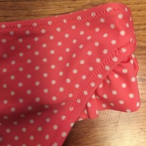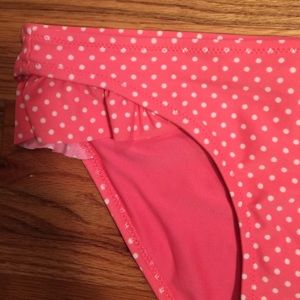 Brand new with hygiene liner attached. Polka dots more like a salmon color white polka dots. Super adorable bottom size small.