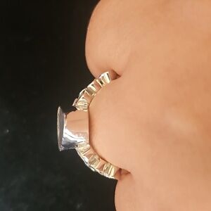 There are 14 bezeled set polki diamond 3 on each side of the center stone and 8 on the band