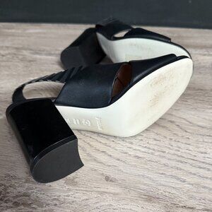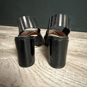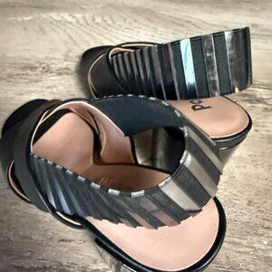 Sexy, sophisticated, stylish heels, featuring a slingback strap with metallic details. Worn once to a dinner. 3.75" High