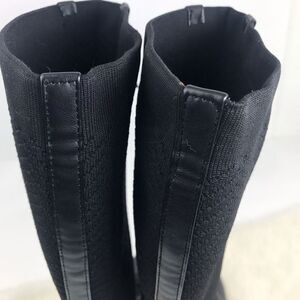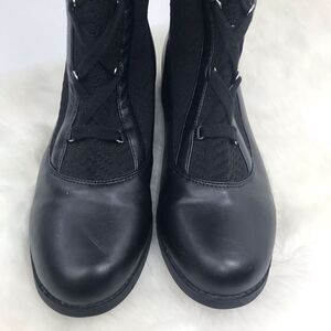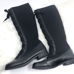 Polly Black Caviar Herringbone Textile Knit Tall Lace Up Pull On Combat Boots