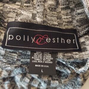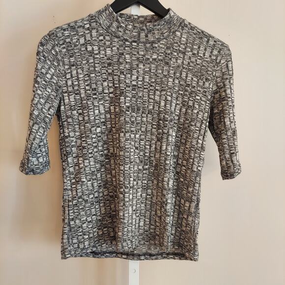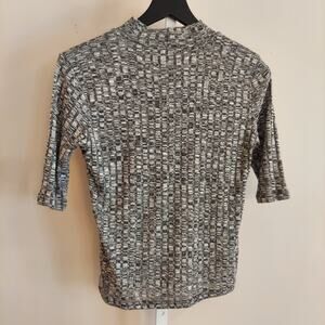 Polly Ester Mock Neck Ribbed Top Large Gray Grunge Y2K Elbow Sleeve Stretchy