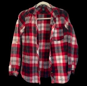 Polly & Esther LG Red Plaid Flannel Button Down Shirt