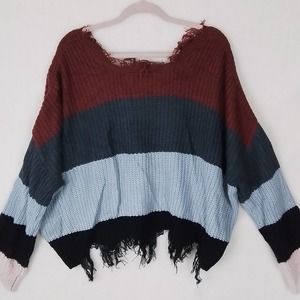 Polly & Esther Oversized Cropped Color Block Sweater Size XLarge