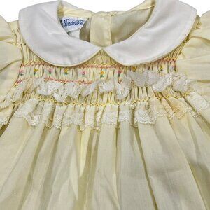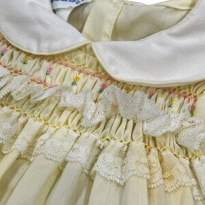 Polly Flinders Vintage Baby Dress Yellow White Lace Trim & Smocking 6-12 Months