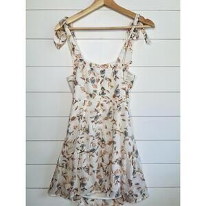 Polly Ivory Floral Print Tie Shoulder Ruffled Hem Sleeveless Mini Dress Size US6