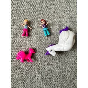 Polly Pocket 2-in-1 Travel Toy Playset, Unicorn Toy with 2 Dolls and Accessories