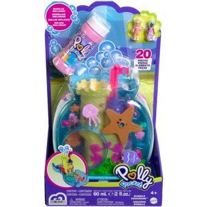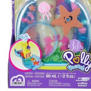 Get ready to make a splash with the Polly Pocket Bubble Aquarium playset featuring 10 activities, Polly and mermaid dolls, bubble solution and 18 accessories (some have a Pop & Swap feature) for underwater fun!