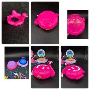 Polly Pocket Lot 3 Compacts Space UFO Compact Flamingo Hedgehog Cafe 20+ Parts. Plus an additional pink tiny flamingo floatie not in the first photo. See collage photo
