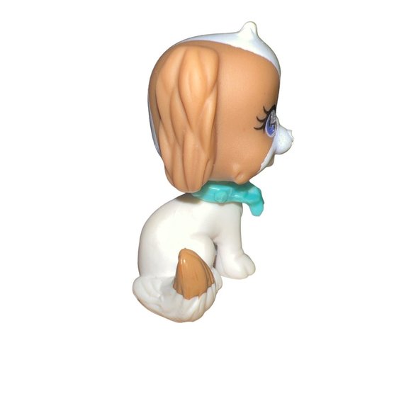 Polly Pocket Sparkling Pets Puppy Dog White Brown Toy Blue Collar Rhinestone 56